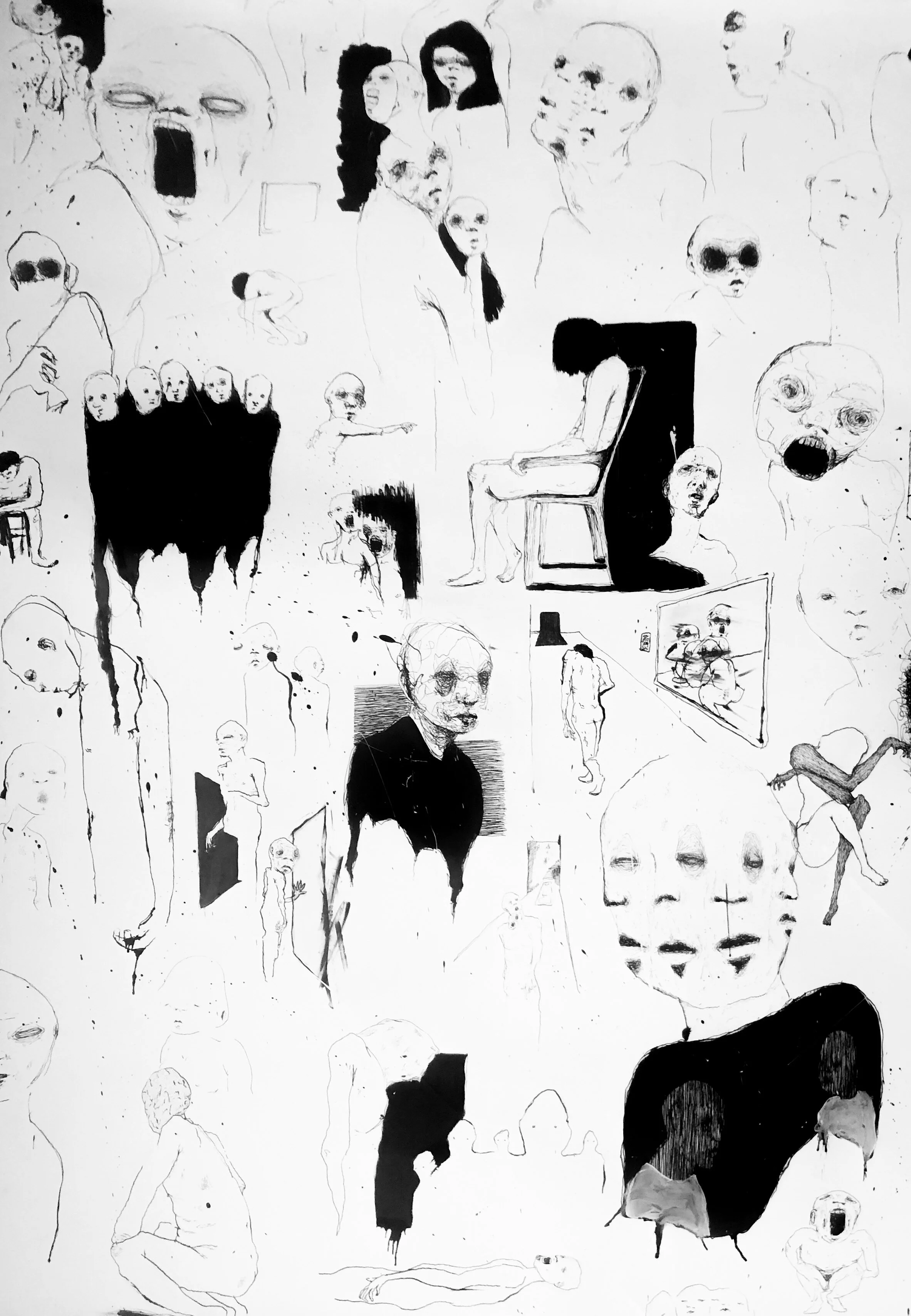 Tapestry (Fear) , 2018 ink on paper 38 x 40 inches.